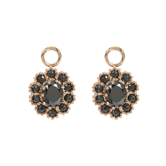 Stainless steel oorbel bedels met zwarte crystal bloem in het zilver, goud en rosé.