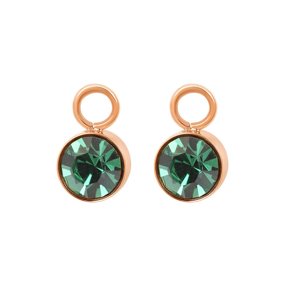 Stainless steel oorbel bedels met ronde groene zirconia steen om aan je oorringen te hangen, in de kleuren zilver, goud en rosé.