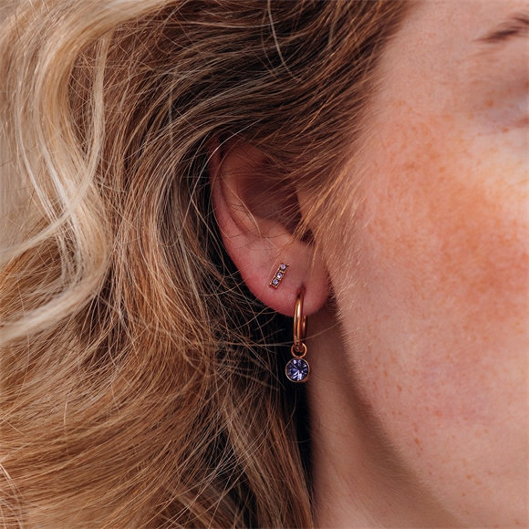 De iXXXi Hoop bedel Stone Tanzanite is gemaakt van stainless steel en is voorzien van een goudkleurige plating. De bedel bestaat uit een ronde vorm die is ingeled met een ronde, paarskleurige zirconia steen. De Hoop bedel Stone Tanzanite heeft een afmeting van 7mm en kun je perfect combineren met onze Oorringen Crystal. De oorbel bedels Stone Tanzanite zijn verkrijgbaar in de platingkleuren goud, rosé goud en zilver.