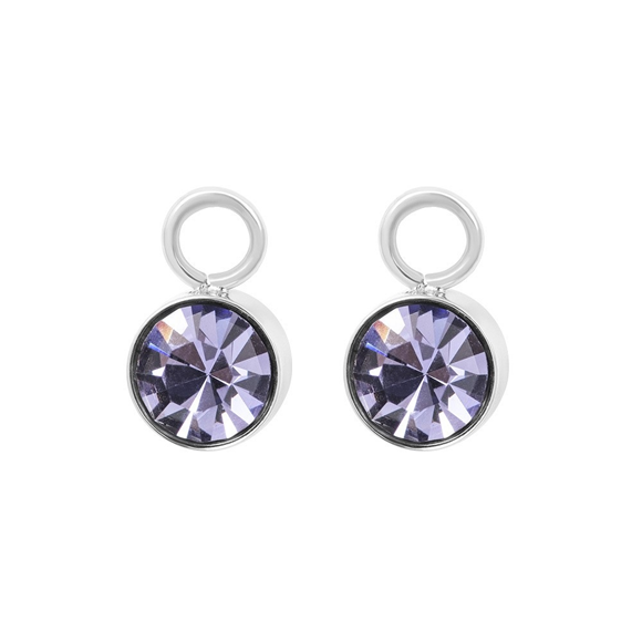 Stainless steel oorbel bedels met ronde paarse zirconia steen om aan je oorringen te hangen, in de kleuren zilver, goud en rosé.