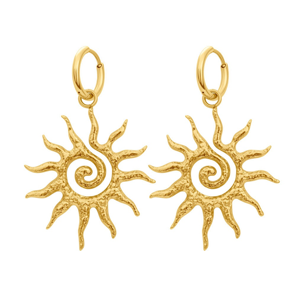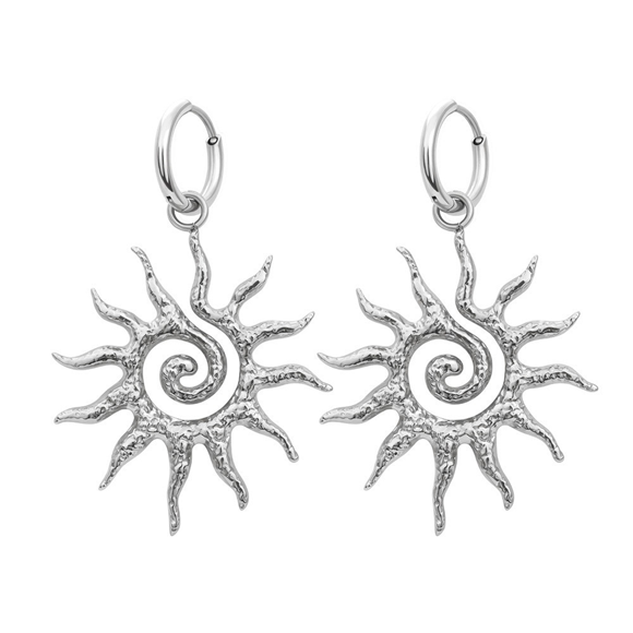 Stainless steel oorringen met zon bedel.
