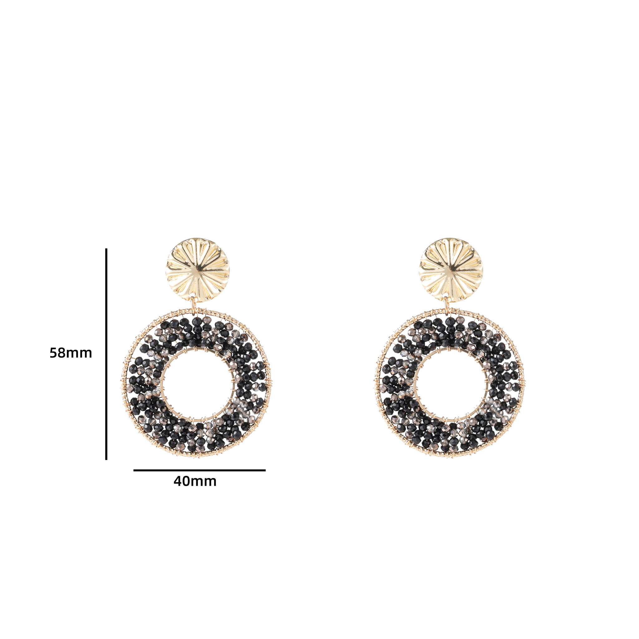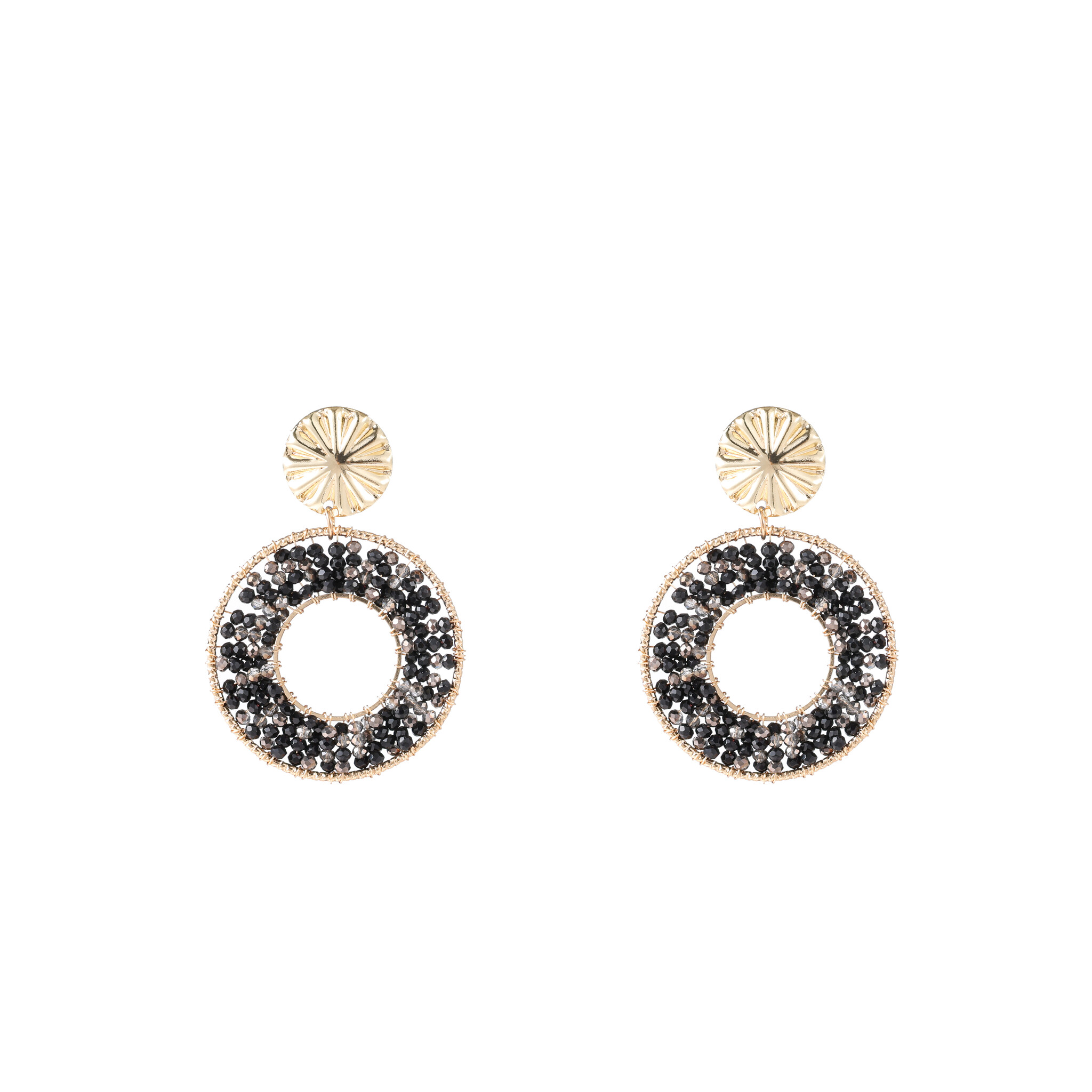 Open Beaded round Black Oorbellen E4552-1