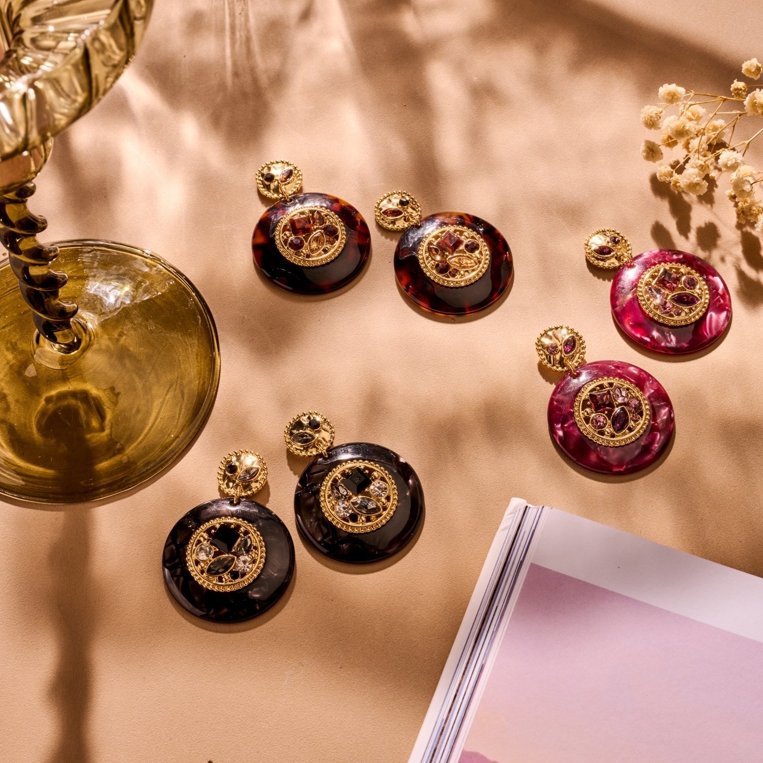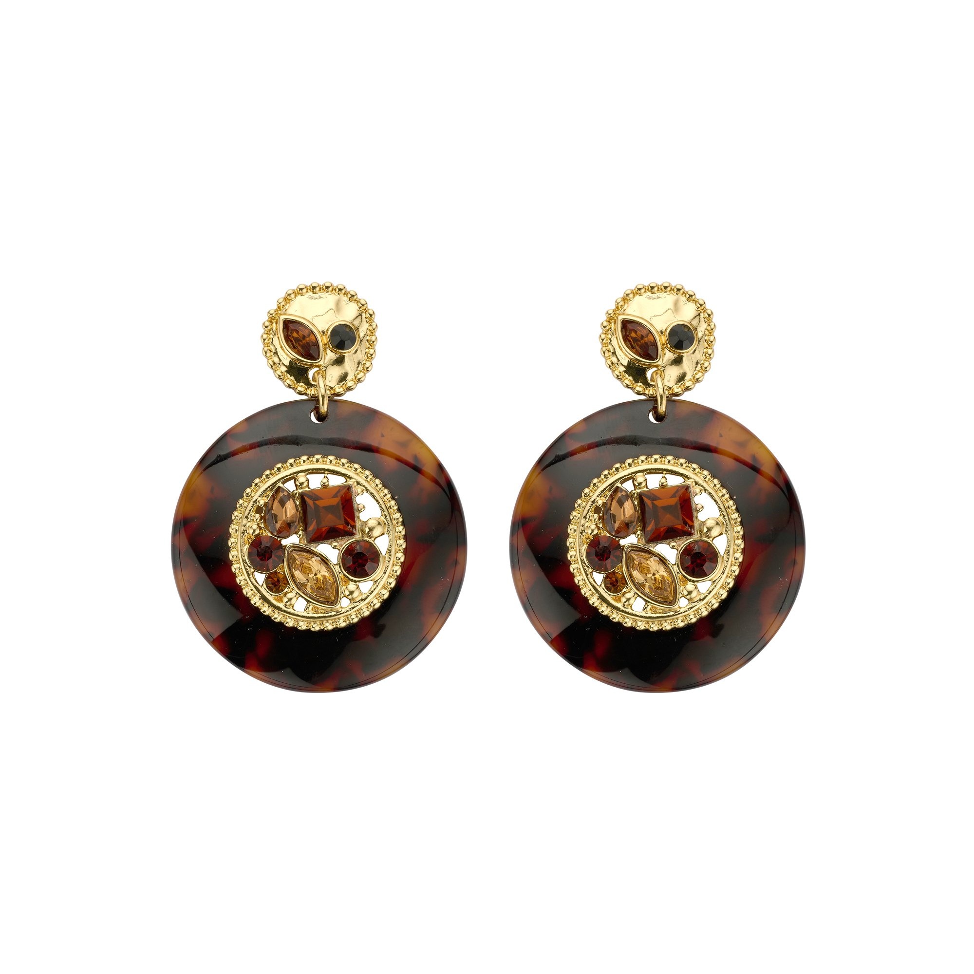 Statement oorbellen van Biba met tortoise print en fonkelende gouden details.