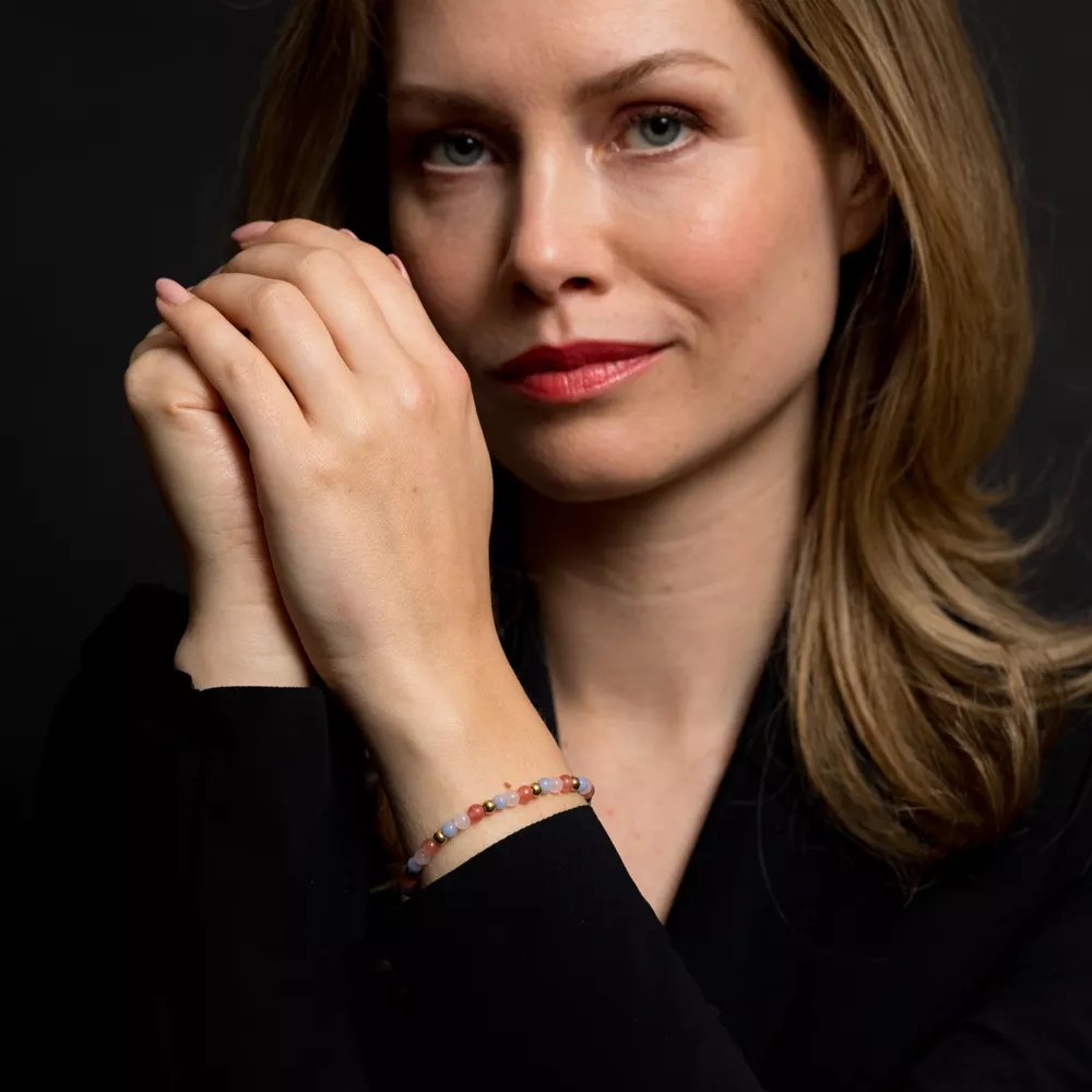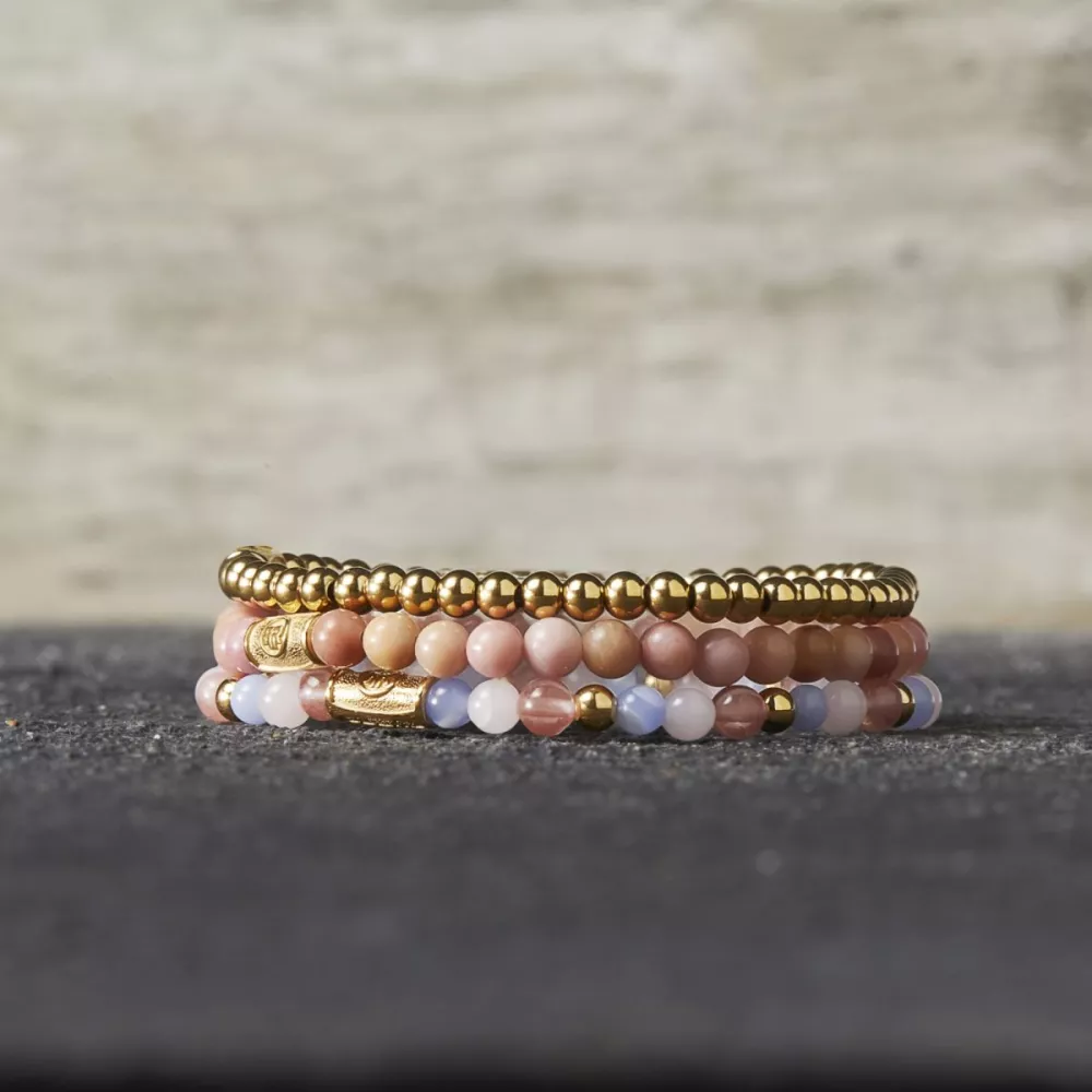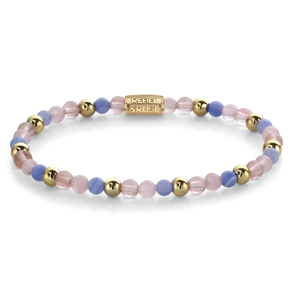 Bead armband, handgemaakt van 4mm stenen met een 18 karaat goud ion-plated edelstalen sluiting. Het Rebel & Rose sieraad is makkelijk te combineren met andere zilveren, leren of kralenarmbanden.