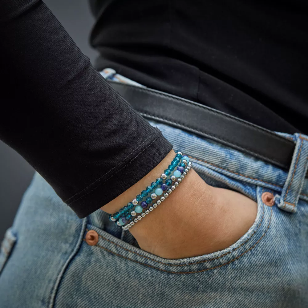 Bead armband, handgemaakt van 4mm stenen (Hematiet, Glas Rock) met een edelstalen sluiting. Het Rebel & Rose sieraad is makkelijk te combineren met onze andere kralenarmbanden.