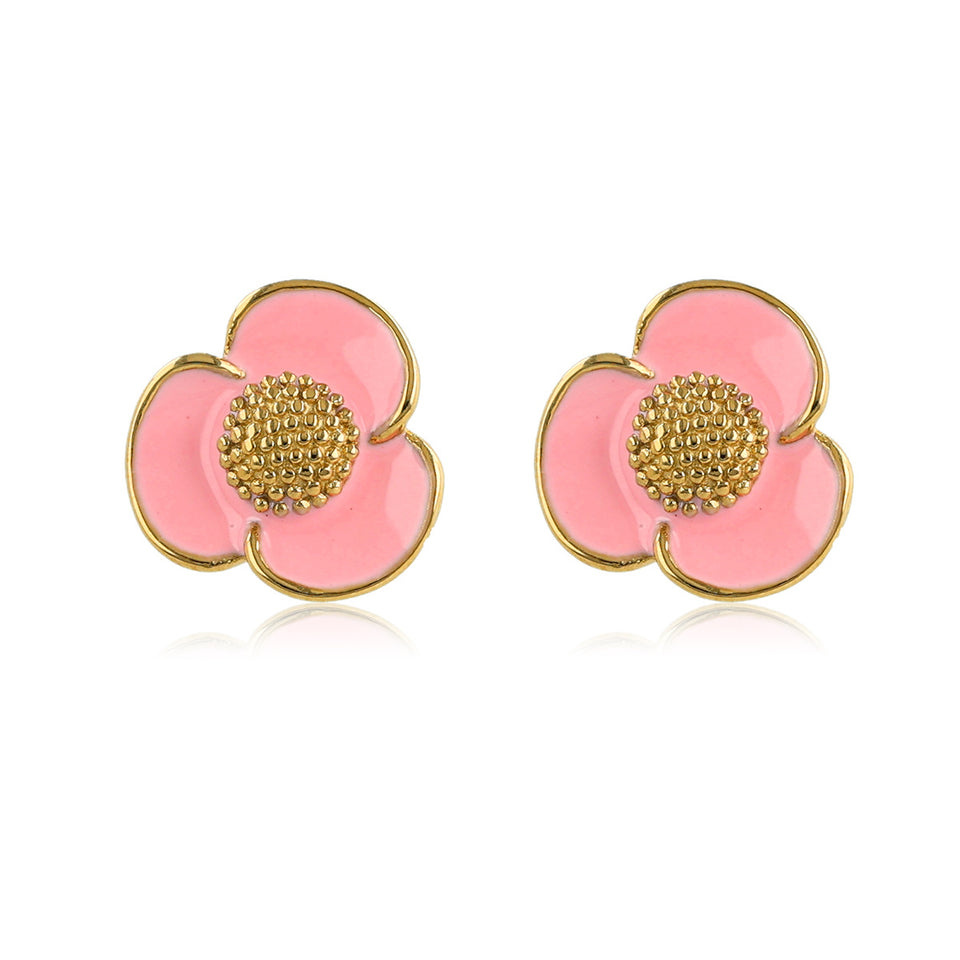 Roze Epoxy Bloemen Oorsteker in Nikkelvrij Stainless Steel - Voeg Stijl Toe aan Jouw Look! - My Bendel
