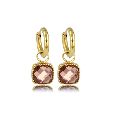 Stijlvolle Goud- of Zilverkleurige Oorringen met Vierkante Roze Glassteen, Nikkelvrij Stainless Steel - Ontdek de Elegantie! - My Bendel shop je online bij Goodies.