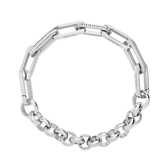 Samengestelde grove schakelarmband van iXXXi Connect met de gedecoreerde links balls, zirconia en sandblasted.