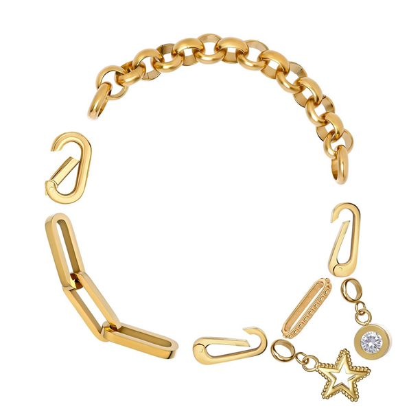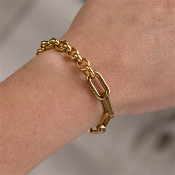 De Connect armband Chelsey bestaat uit verschillende sieraad onderdelen uit de iXXXi Connect collectie, gemaakt van stainless steel. Met onze iXXXi Connect schakels, kettingen en verbindschakels kun je geheel naar wens je eigen sieraad samenstellen. De Connect armband Chelsey is samengesteld uit de sieraad onderdelen: de ketting Amy in de kleur goud en ketting Connect in de kleur goud, één keer Click Oval, twee Click Connect beide in de kleur goud, een Link Balls en een Charm Star en Charm CreArtive. Link your style, connect your story.