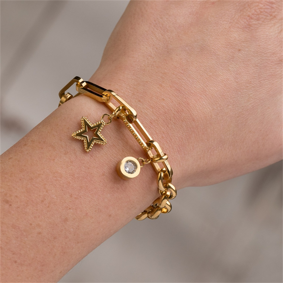 Samengestelde grove schakelarmband van iXXXi Connect met een open ster en witte crystal bedel.