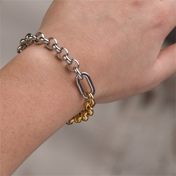 De Connect armband Chloe bestaat uit verschillende sieraad onderdelen uit de iXXXi Connect collectie, gemaakt van stainless steel. Met onze iXXXi Connect schakels, kettingen en verbindschakels kun je geheel naar wens je eigen sieraad samenstellen. De Connect armband Chloe is samengesteld uit de sieraad onderdelen: de ketting Amy in de kleuren goud en zilver, twee keer Click Oval in de kleur goud en één keer in de kleur zilver en één Link Zirconia in de kleur goud. Link your style, connect your story.