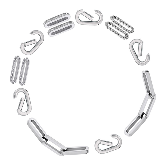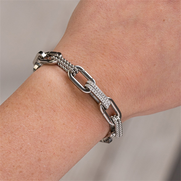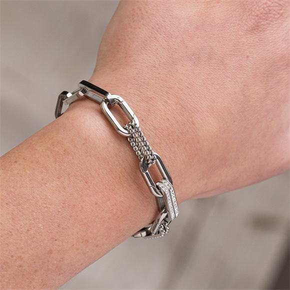 Samengestelde grove schakelarmband van iXXXi Connect met de gedecoreerde links sandblasted, balls en twisted.