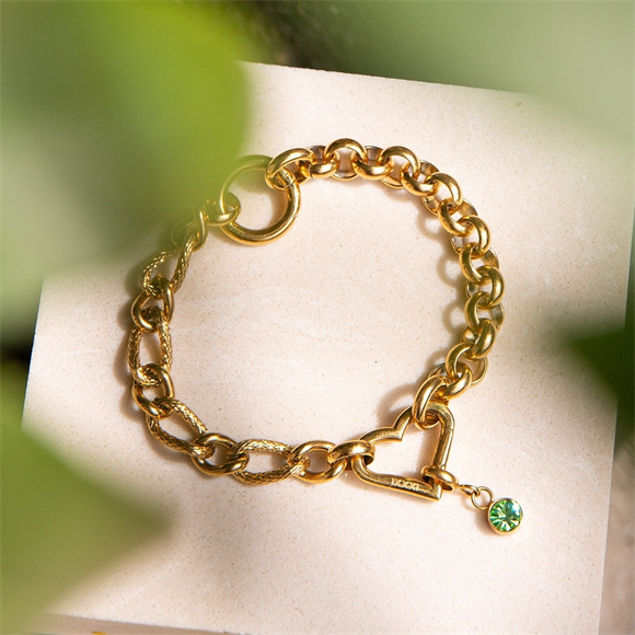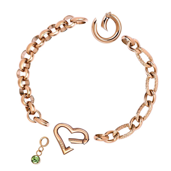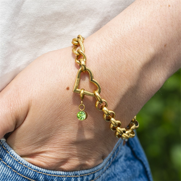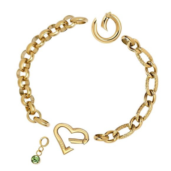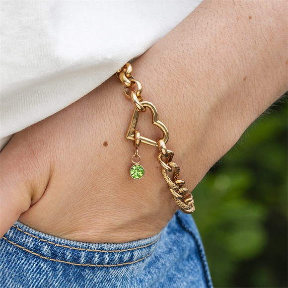 De Connect armband Daisy bestaat uit verschillende sieraad onderdelen uit de iXXXi Connect collectie, gemaakt van stainless steel. Met onze iXXXi Connect schakels, kettingen en verbindschakels kun je geheel naar wens je eigen sieraad samenstellen. De goudkleurige Connect armband Daisy is samengesteld uit de sieraad onderdelen: de ketting Amy en ketting Bailey, een Click Heart en een Click Round verbindschakel en een bedel Stone Green. Link your style, connect your story.