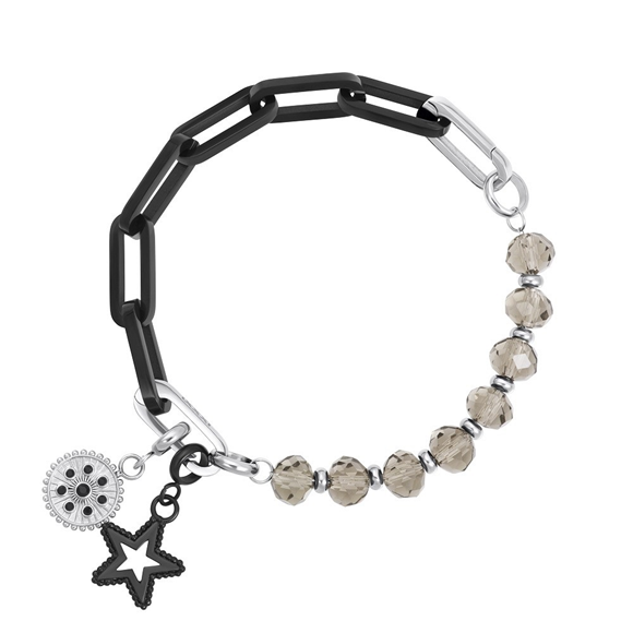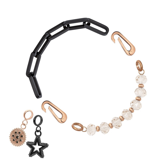 De Connect armband Flo bestaat uit verschillende sieraad onderdelen uit de iXXXi Connect collectie, gemaakt van stainless steel. Met onze iXXXi Connect schakels, kettingen en verbindschakels kun je geheel naar wens je eigen sieraad samenstellen. De Connect armband Flo is samengesteld uit de sieraad onderdelen: de ketting Bliss en de ketting Connect, twee Click Connect verbindschakels en een bedel Midnight Black Diamond en Star. Link your style, connect your story.
