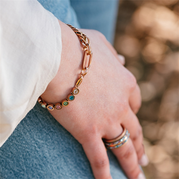 De Connect armband Guusje bestaat uit verschillende sieraad onderdelen uit de iXXXi Connect collectie, gemaakt van stainless steel. Met onze iXXXi Connect schakels, kettingen en verbindschakels kun je geheel naar wens je eigen sieraad samenstellen. De Connect armband Guusje is samengesteld uit de sieraad onderdelen: de ketting Alix en de ketting Britta Blossom, een Verbindschakel Oval en een verbindschakel Connect. Link your style, connect your story.