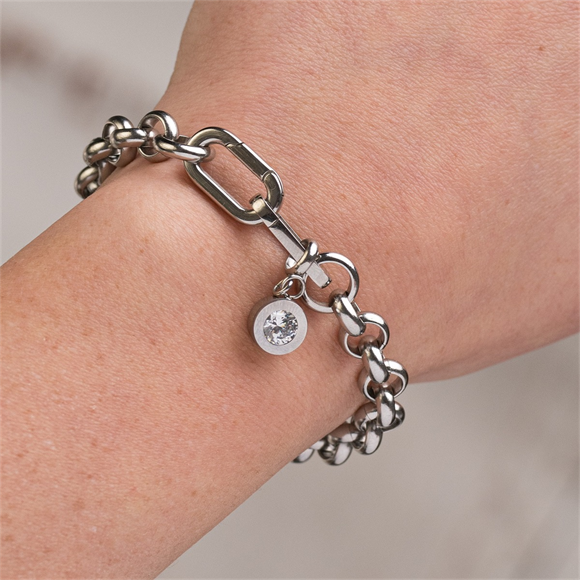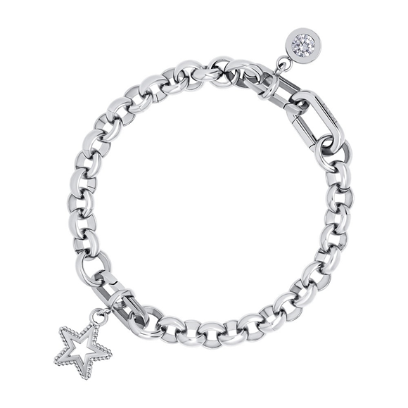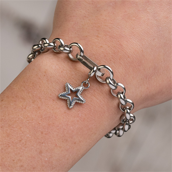 Samengestelde iXXXi Connect armband met grove schaklels en twee bedels, de open ster, en de creartive stone.