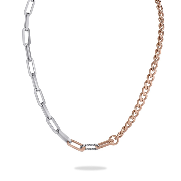 Samengestelde iXXXi Connect bicolor halsketting met getwiste schakel.