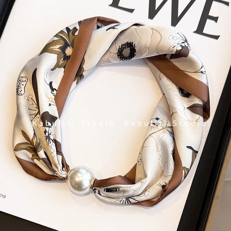 Sjaalketting met Parel Magnetische Sluiting Beige & Bruin Bloemen