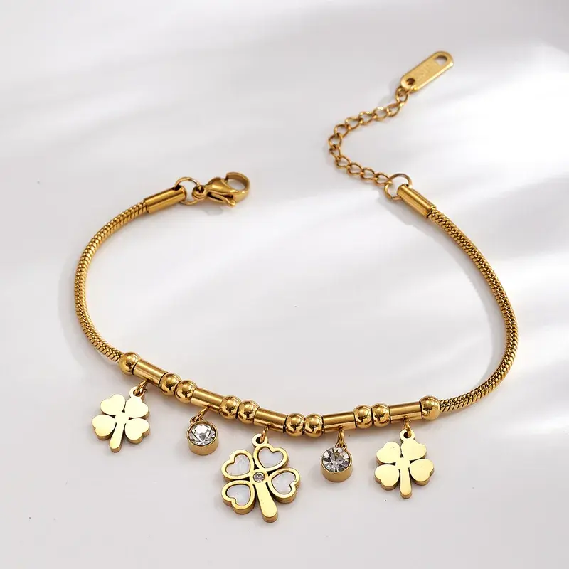 Stainless Steel Armband Klaver Bedels – Goudkleurig