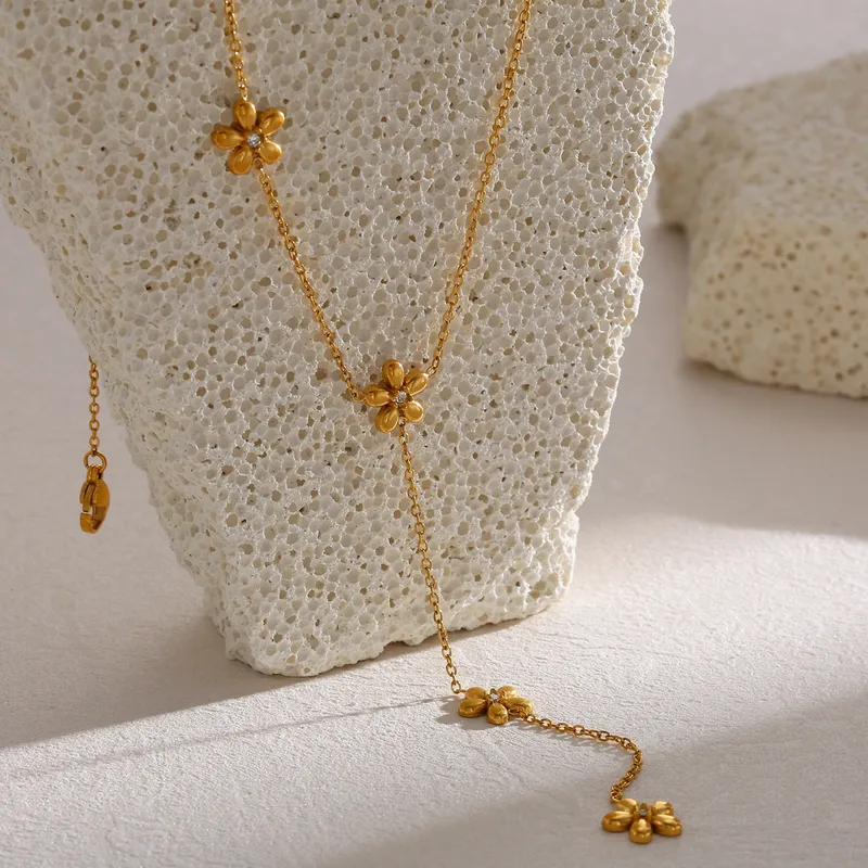 Stainless Steel Ketting Bloemetjes Y-Ketting Goudkleurig 39+5 cm