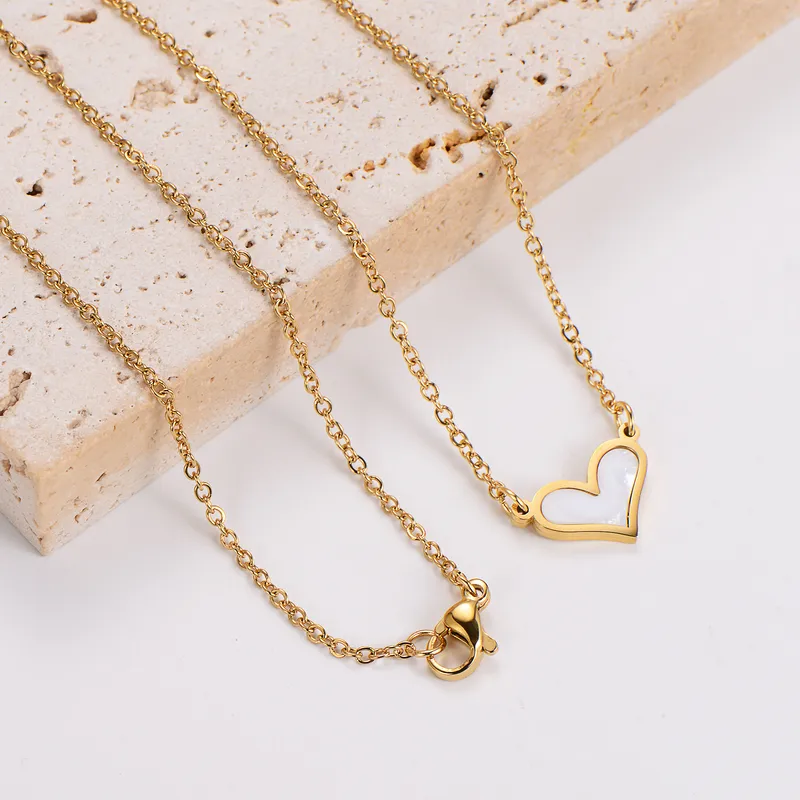 Stainless Steel Ketting Hartje Parelmoer Wit – Minimalistische Gouden Ketting 40+5 cm