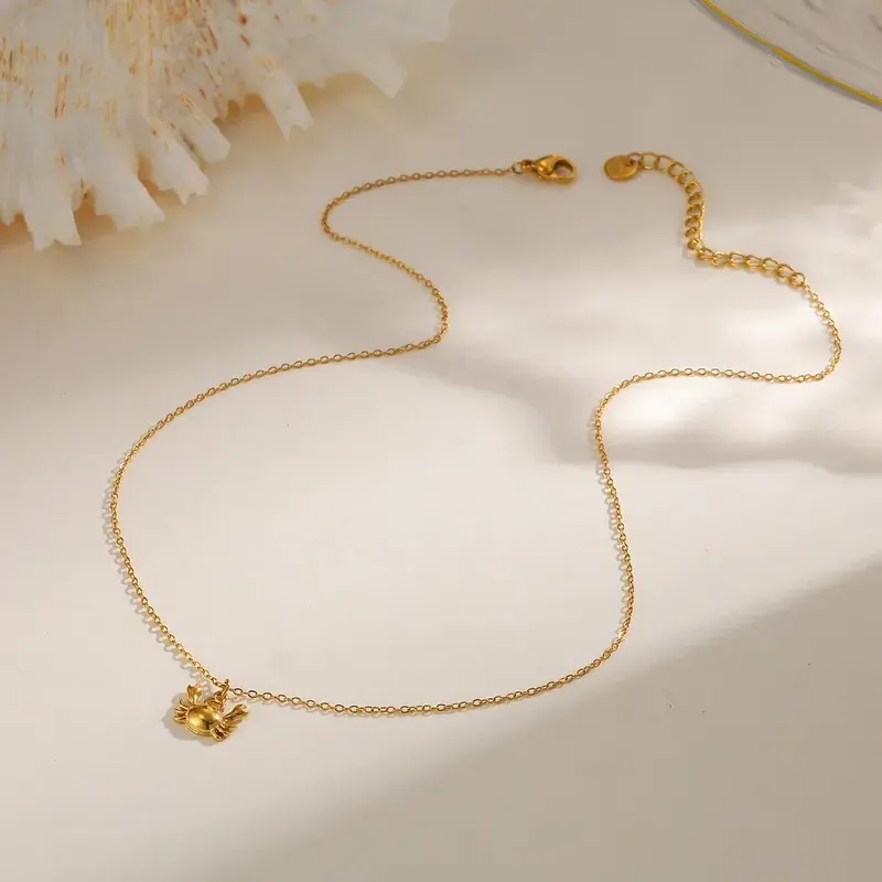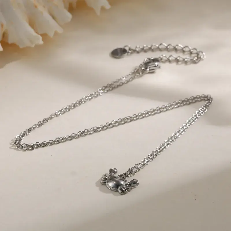 Fijne stainless steel ketting met subtiele krab hanger. Minimalistisch, zomers en perfect voor elke dag.