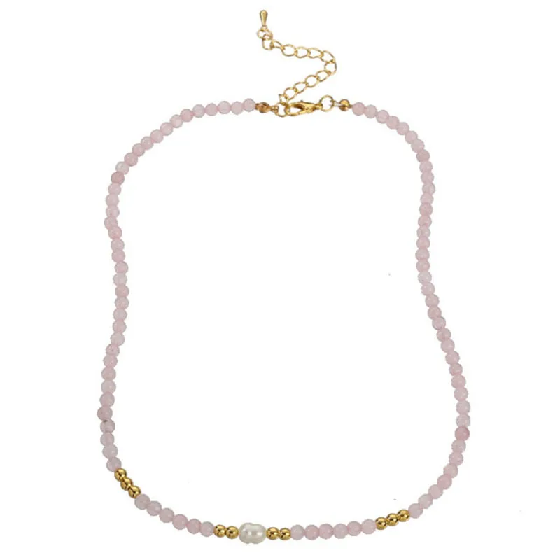 Stainless Steel Natuursteen Ketting Rozenkwarts met Parel 40+5 cm