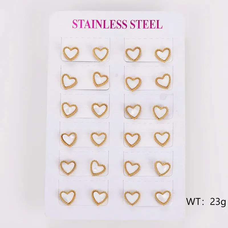 Stainless Steel Oorbellen Schelp Hartjes 8 mm – Goudkleurig
