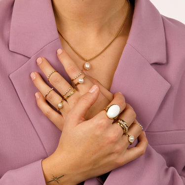 Zilveren of Gouden statement ring met White Aventurine edelsteen voor dames. Stijlvol en uniek. 1 jaar garantie.