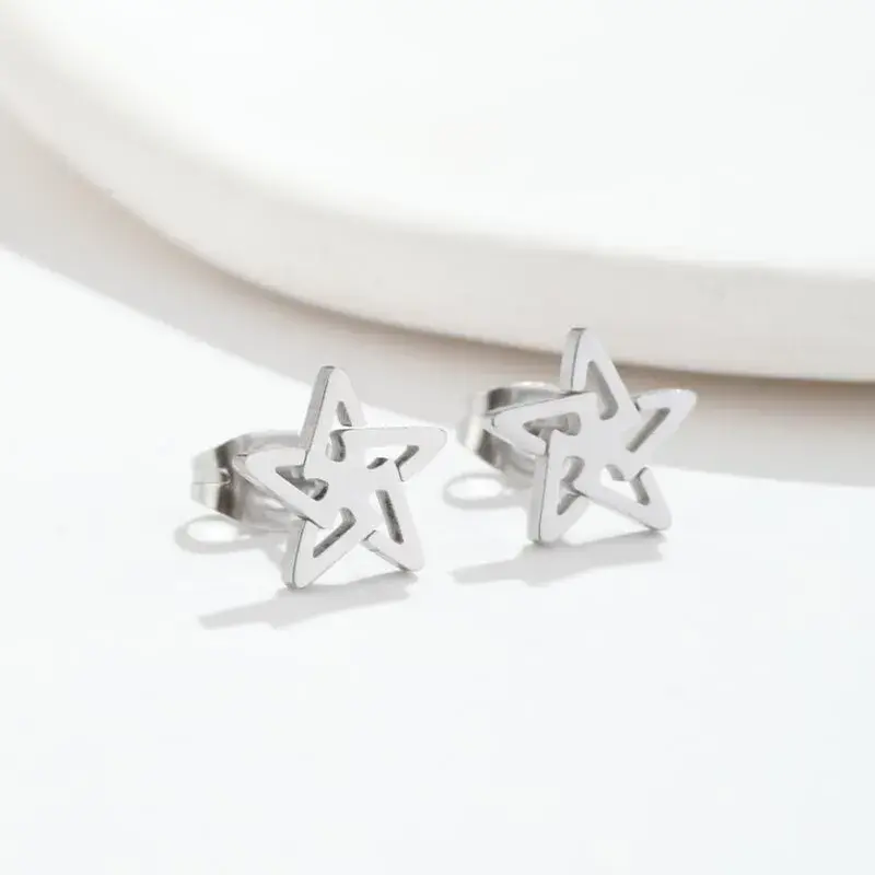 Stainless Steel Ster Oorstekers Open – Trendy Star Studs Goud/Zilver
