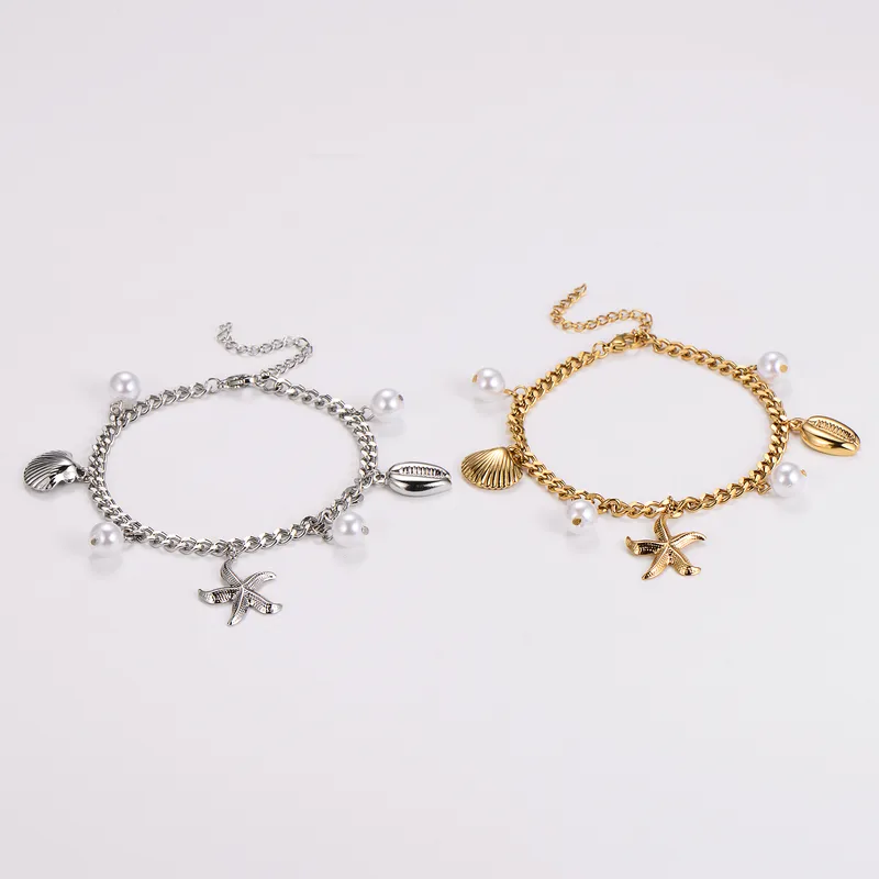 Stainless Steel Armband Zee Bedels – Ster, Schelp & Parel – Goud of Zilver