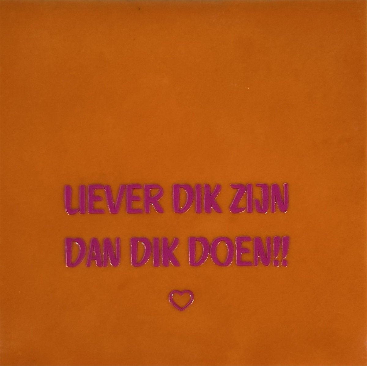 Tegeltje liever dik zijn/dik doen oranje/roze