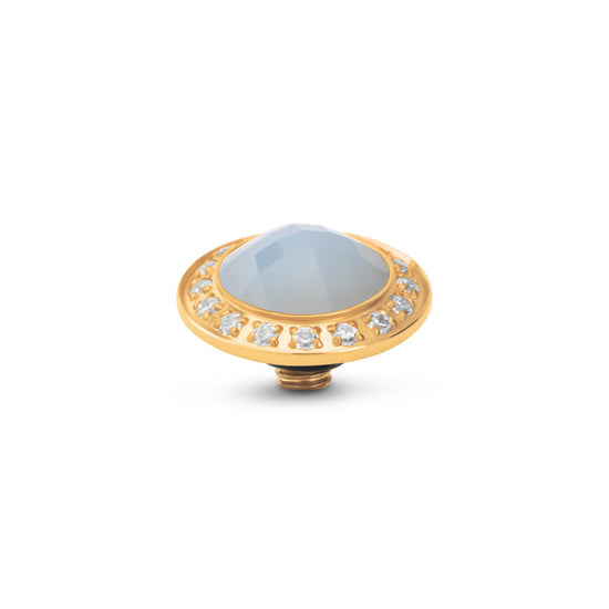 Facet geslepen Melano Twisted steen met rondom kleine cz steentjes die je op je Melano Twisted basisring kunt draaien.