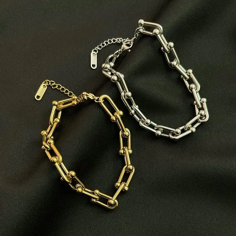 Trendy stainless steel schakel armband in goud of zilver. Verstelbaar en perfect voor een moderne look.