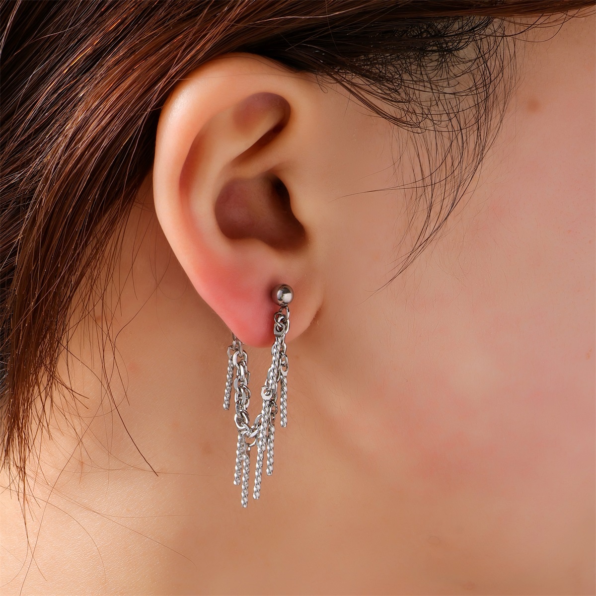 Deze studs met ketting en staafjes zijn zonder twijfel prachtig. Het ontwerp van de oorbellen is zowel verfijnd als gedurfd. Laat jouw persoonlijkheid schitteren met deze unieke oorbellen.