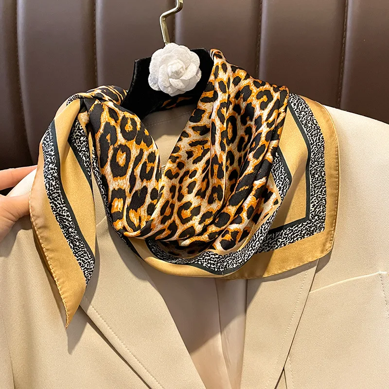 Vierkante Zijden Sjaal 70x70 cm Leopard Goud/Zwart Print