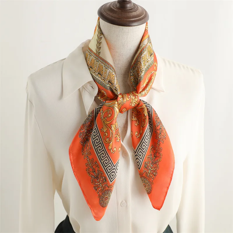 Vierkante Zijden Sjaal 70x70 cm Oranje Barok Print