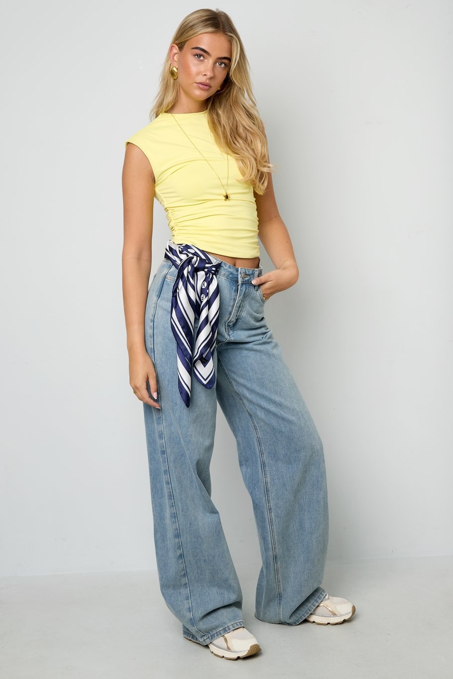 Hoe cute is deze mini sjaal! Deze sjaal maakt jou look net wat spannender en fashionable. Draag de accessoire om je nek, knoop hem mooi om de hengsel van je tas of strik hem in je haar, het kan allemaal! Maak de look af met de leukste sieraden van Goodies